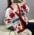 Cat Lovers - This Cartoon Cat V Neck Cardigan is made for you! Unique kawaii design that you won't find easily elsewhere! They're warm and comfy to wear!