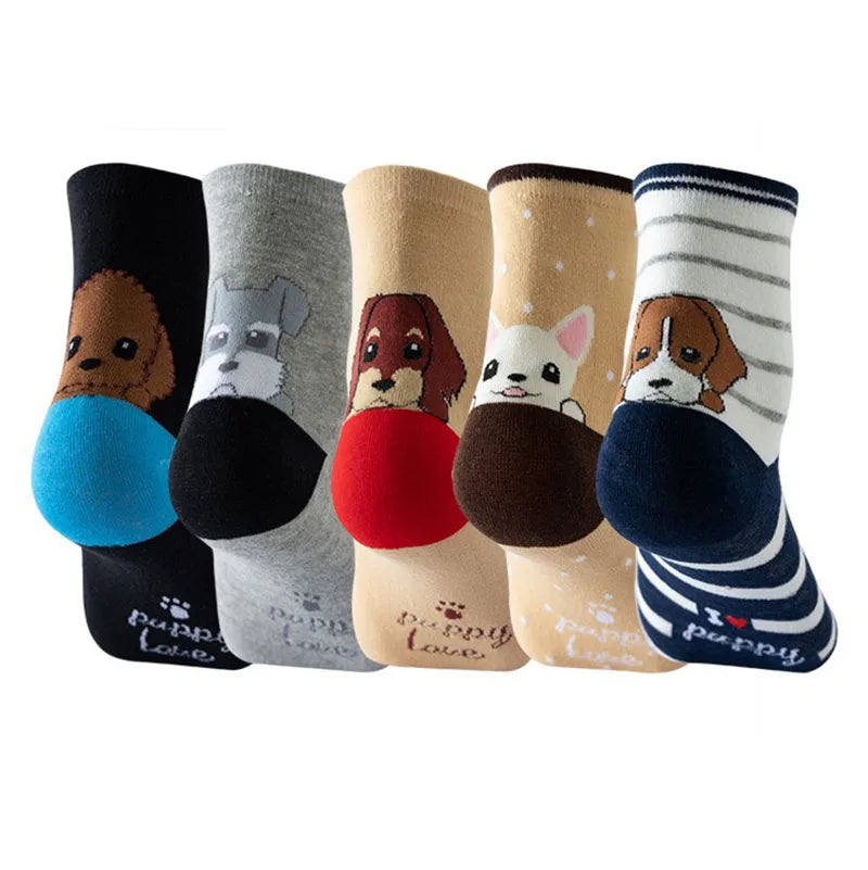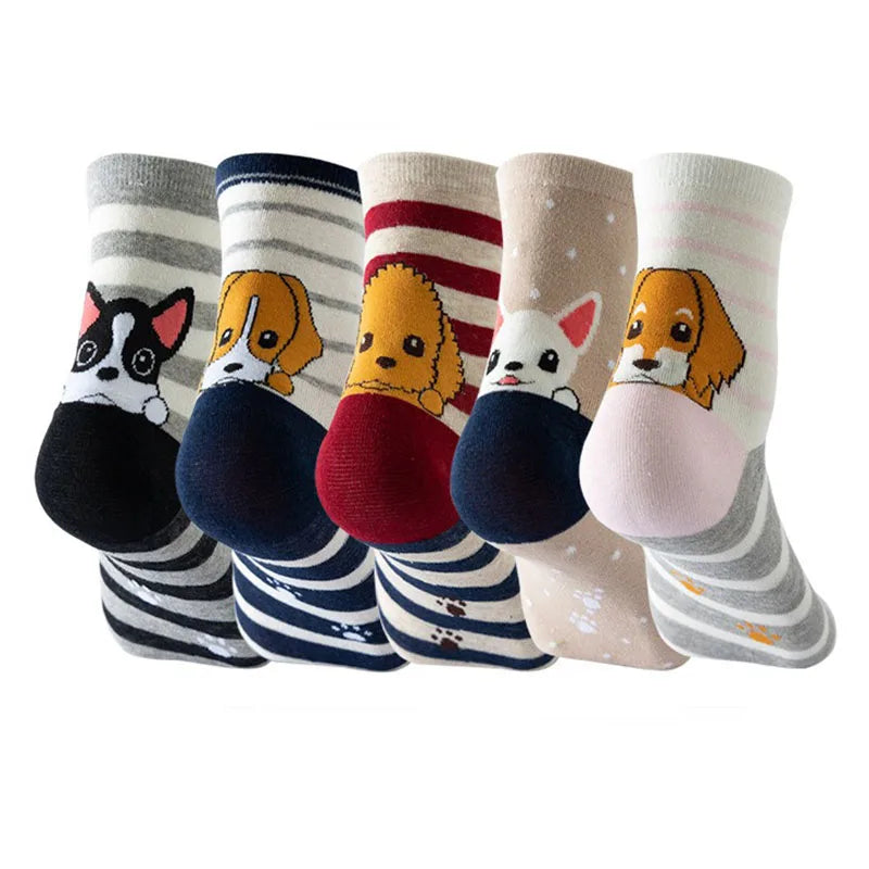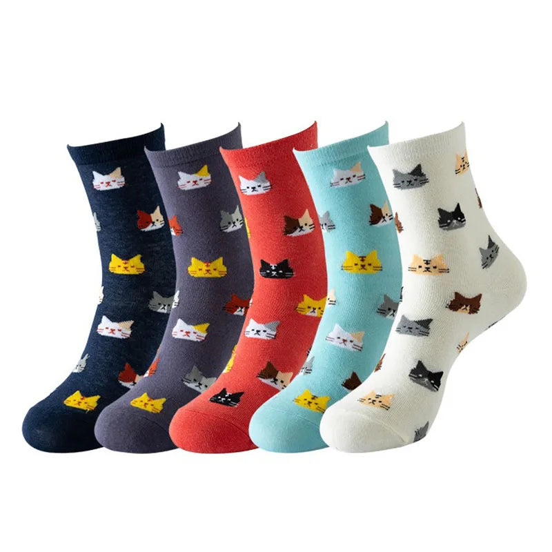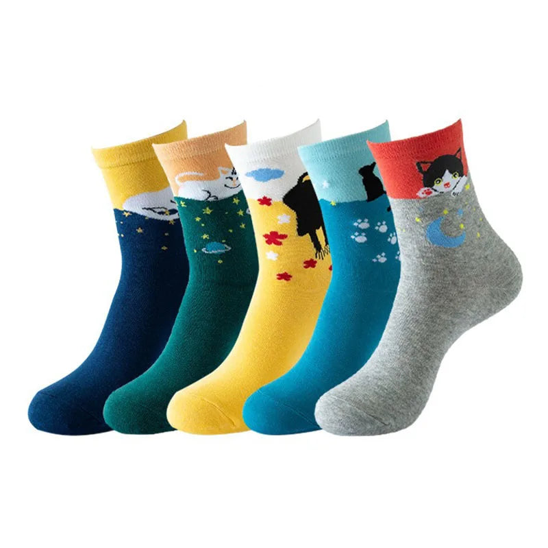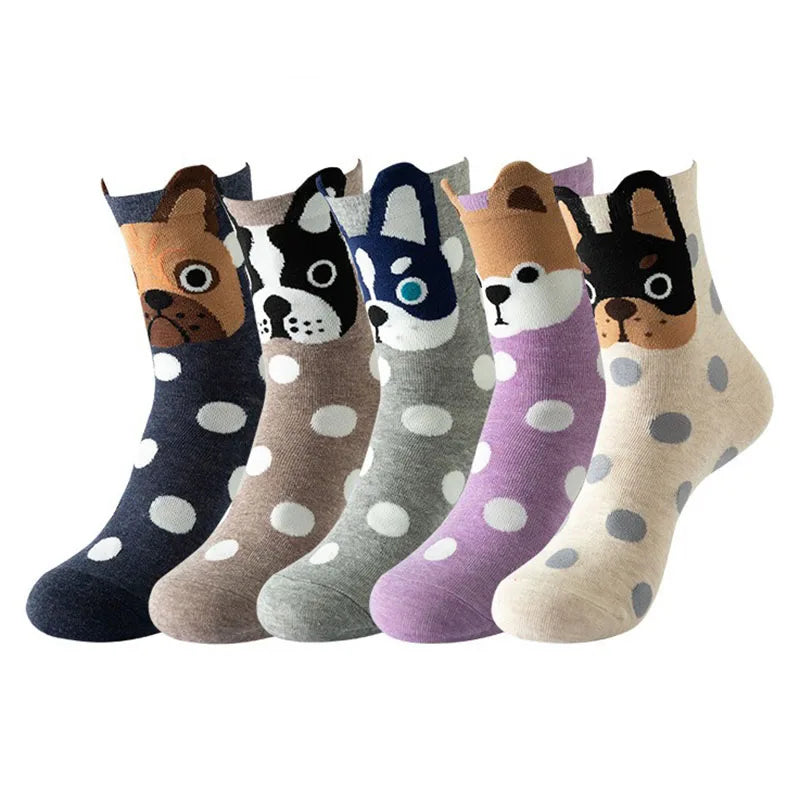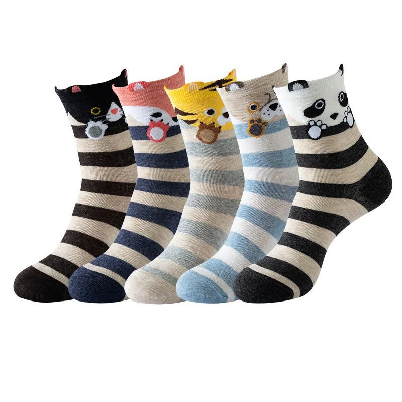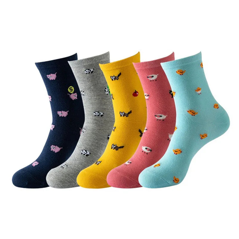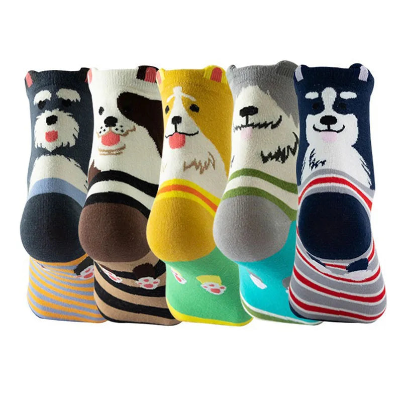 Add charm and comfort to your everyday wardrobe featuring playful cat and dog designs.with these 5 Pairs of Cute Animal Crew Socks!