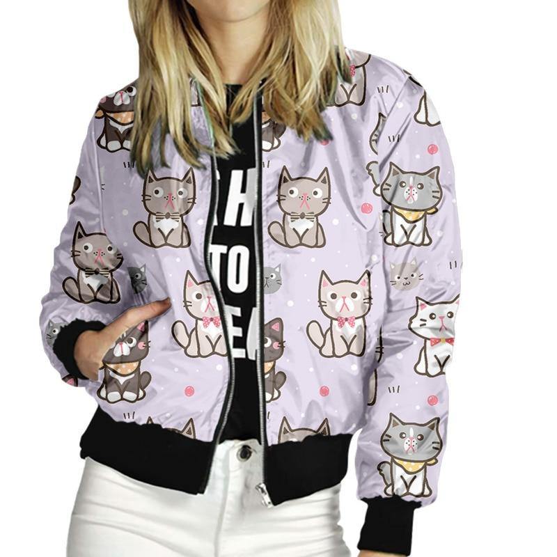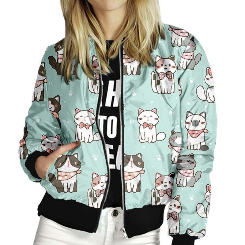 Cat Lovers - you need this cute Cartoon Cat Bomber Jacket! Choose your favorite style now! Also a purrfect gift idea for your cat loving friends!